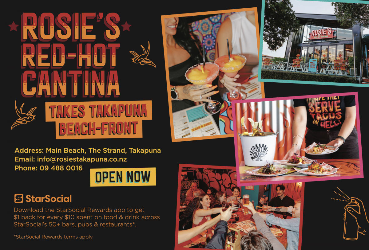 The North Shore has just got a little spicier with the arrival of Rosie’s Red-Hot Cantina, a vibrant and lively addition to Takapuna’s beachfront. Taking over the beloved spot where Franc’s stood for a decade, Rosie’s has swept in with her signature flair, offering a new and exciting experience for locals and visitors alike.