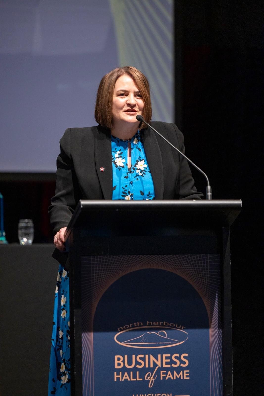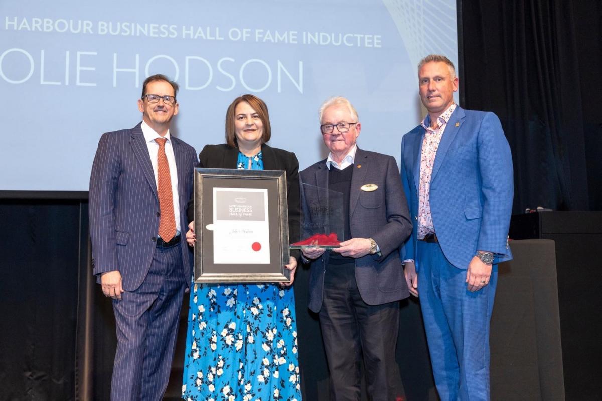 In accepting her induction into the North Harbour Business Hall of Fame, Jolie Hodson credited her career success to the encouragement of many mentors, the collaboration of her peers, the support of her team, and the unwavering love and patience of her husband Gareth, son Sam, daughter Emma and her wider family.
